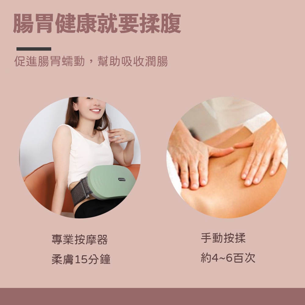 1. 呵護腹部溫暖按摩共享健康生態。