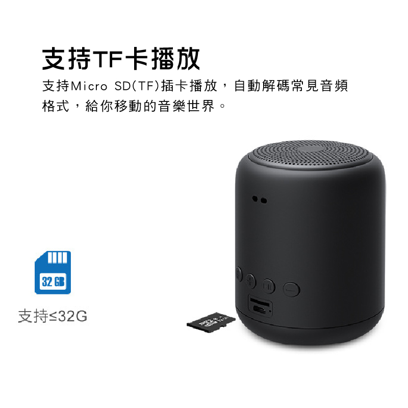 支持 TF卡播放音樂:可插入TF(Micro SD)卡播放其中的MP3音樂