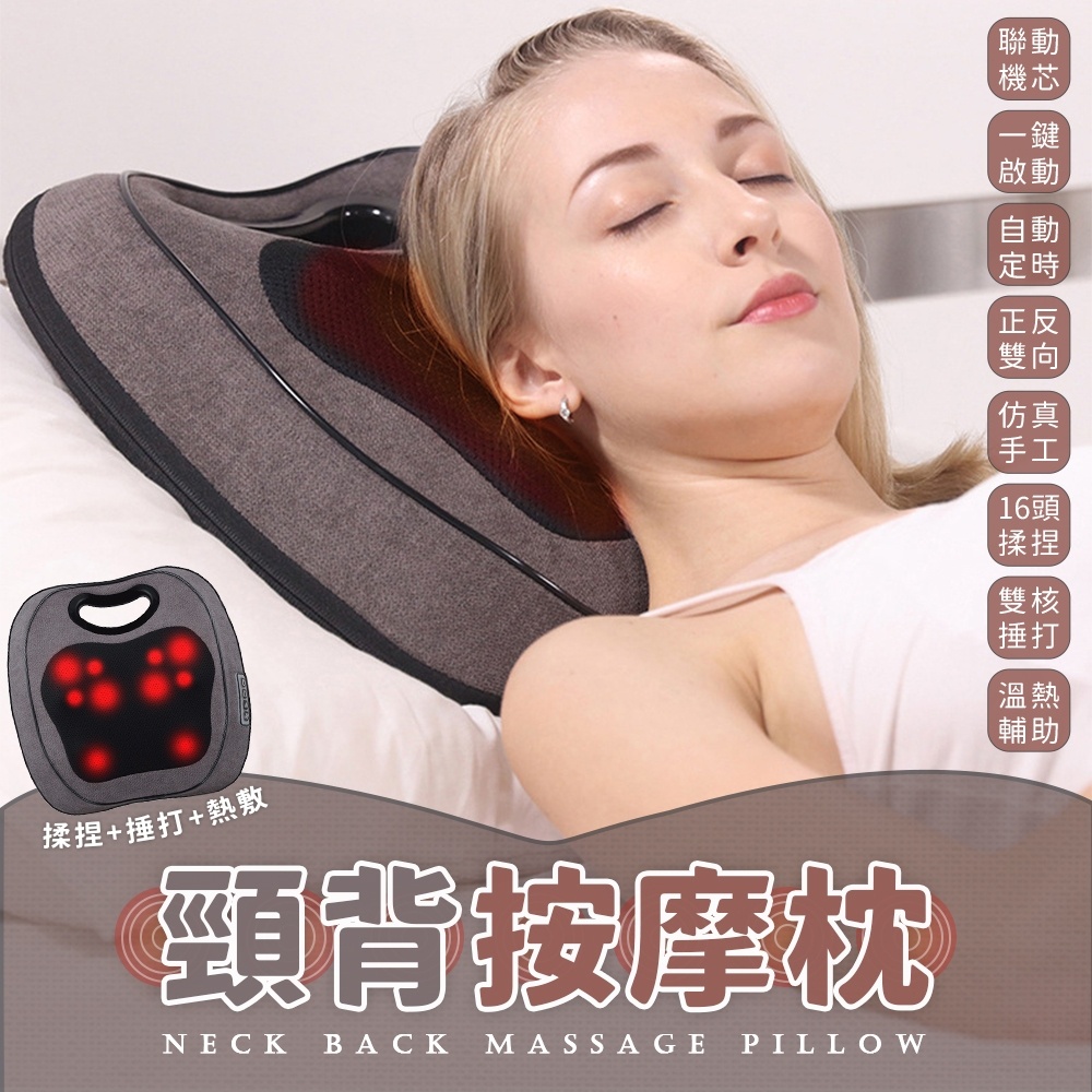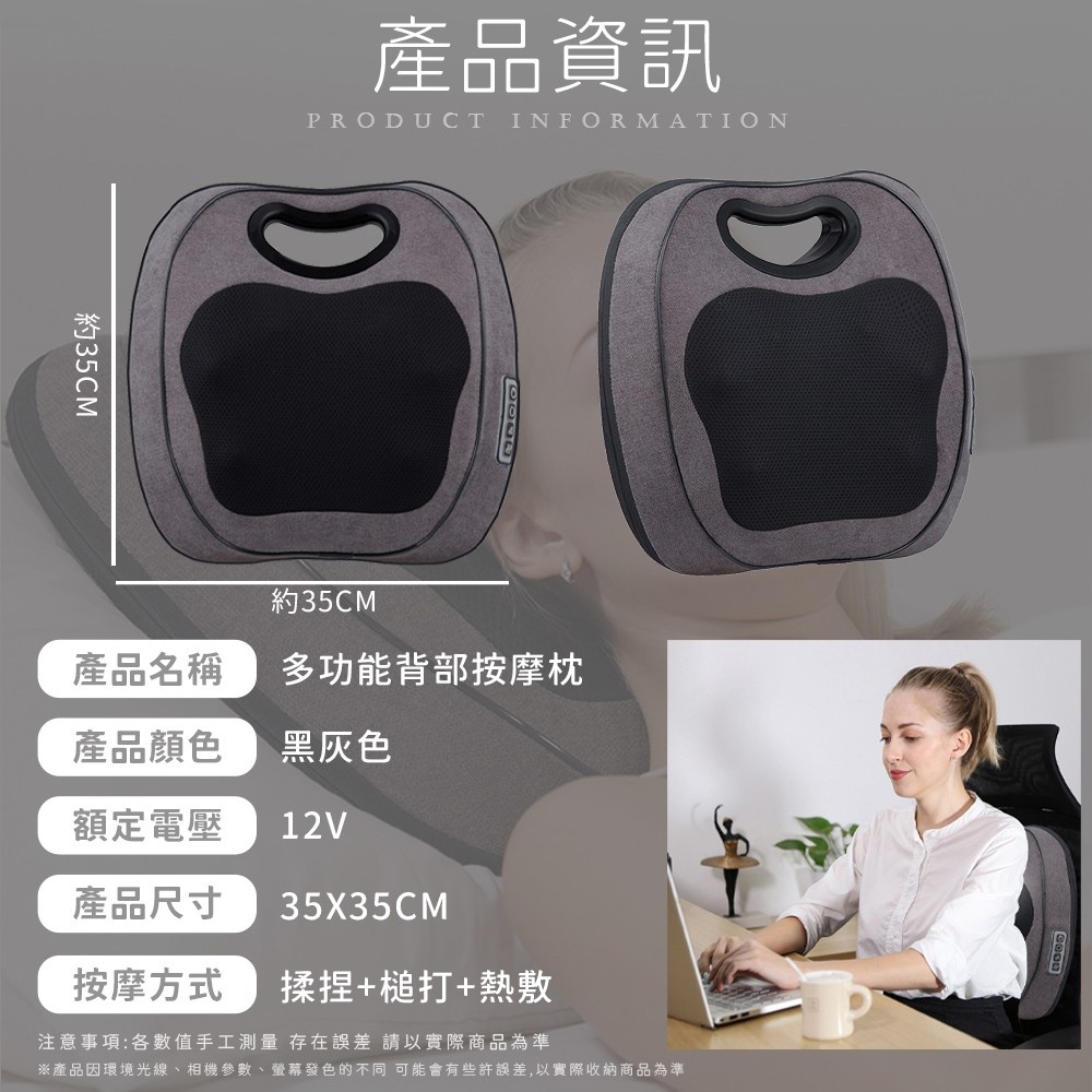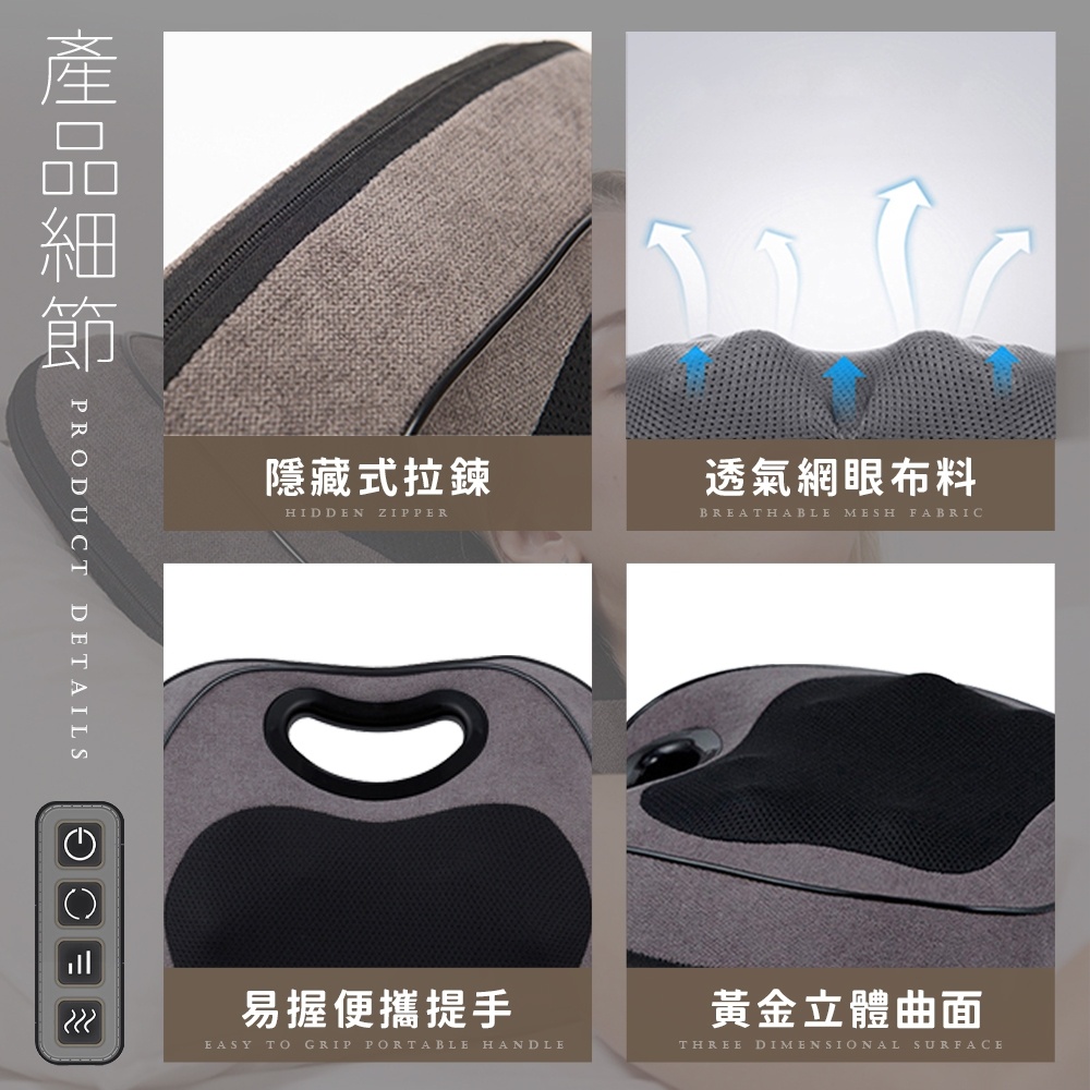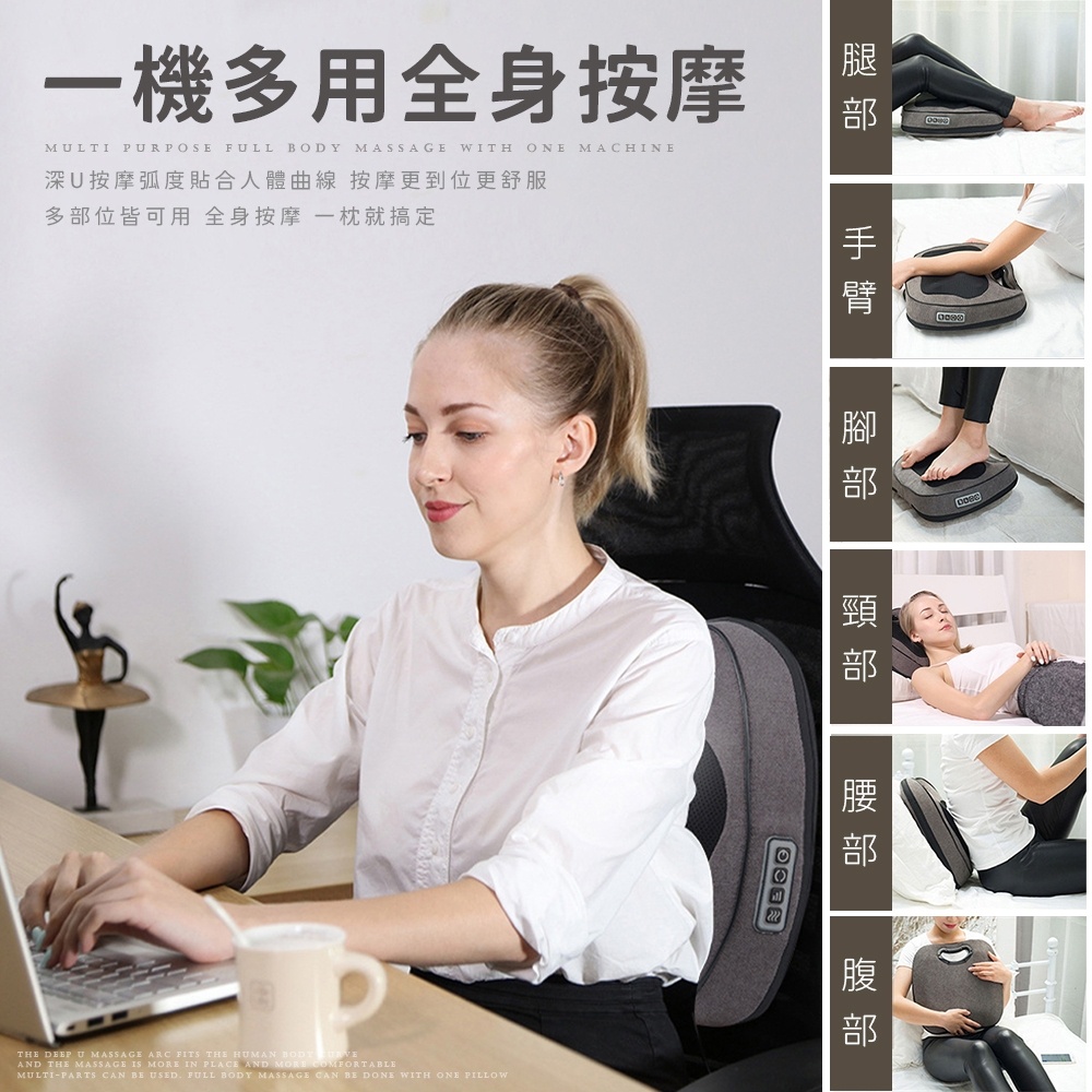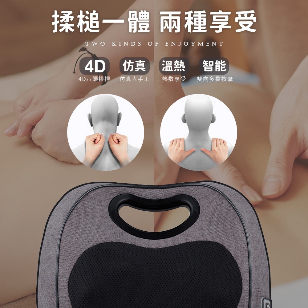 多功能按摩靠枕墊揉錘一體按摩儀,揉捶一體兩種享受,4D八頭正反揉捏/仿真人手雙頭捶打/熱敷揉捏享受/智能雙向多檔按摩!