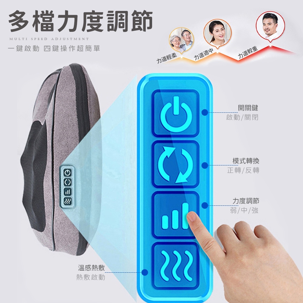 * 4D按摩/仿人手捶打揉捏按摩/捶打按摩/溫感熱敷/三檔變速。