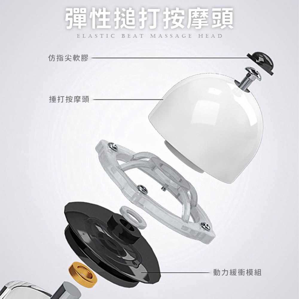 * 彈性捶打按摩頭多重緩衝設計,告別機械式生硬捶打。