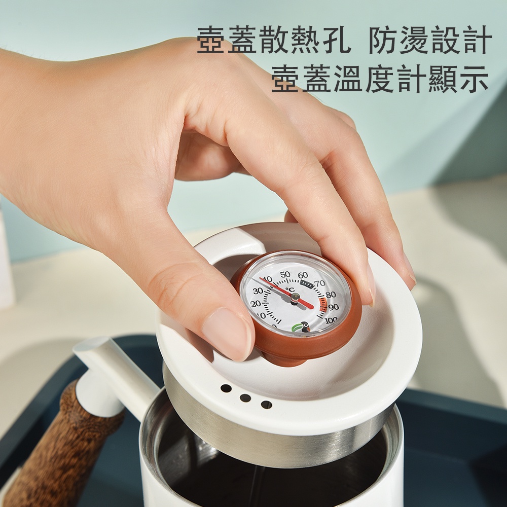 * 壺蓋自帶溫度計,再也不需要外掛溫度計,也不需要手持。