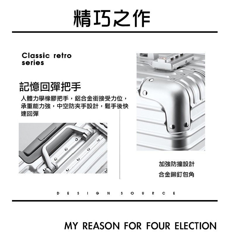 * 合金鉚釘包角:金屬護角加固升級,防撞效果更佳。