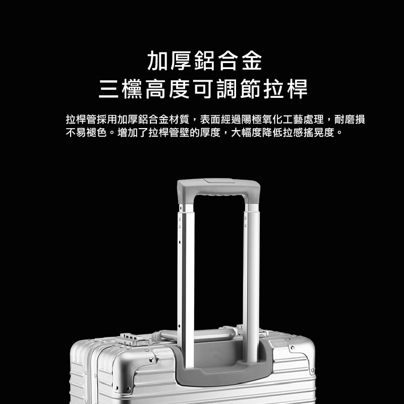 * 三檔高度可調拉桿:拉桿採用航空級加厚鋁合金材質,表面經過陽極氧化工藝處理耐磨不易掉色!並增加了拉管的管壁厚度,大幅度江都了拉桿的搖晃。