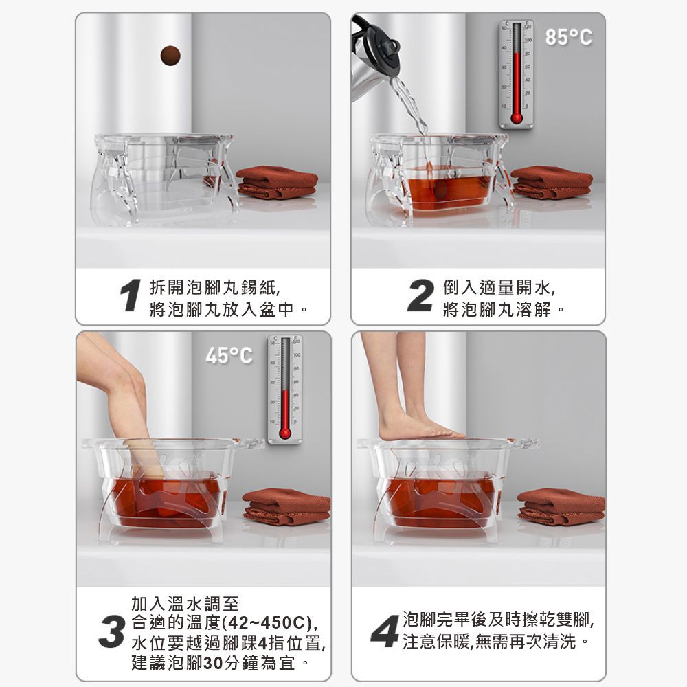 ▍拆開泡腳丸錫紙,將泡腳丸放入盆中 ▍
