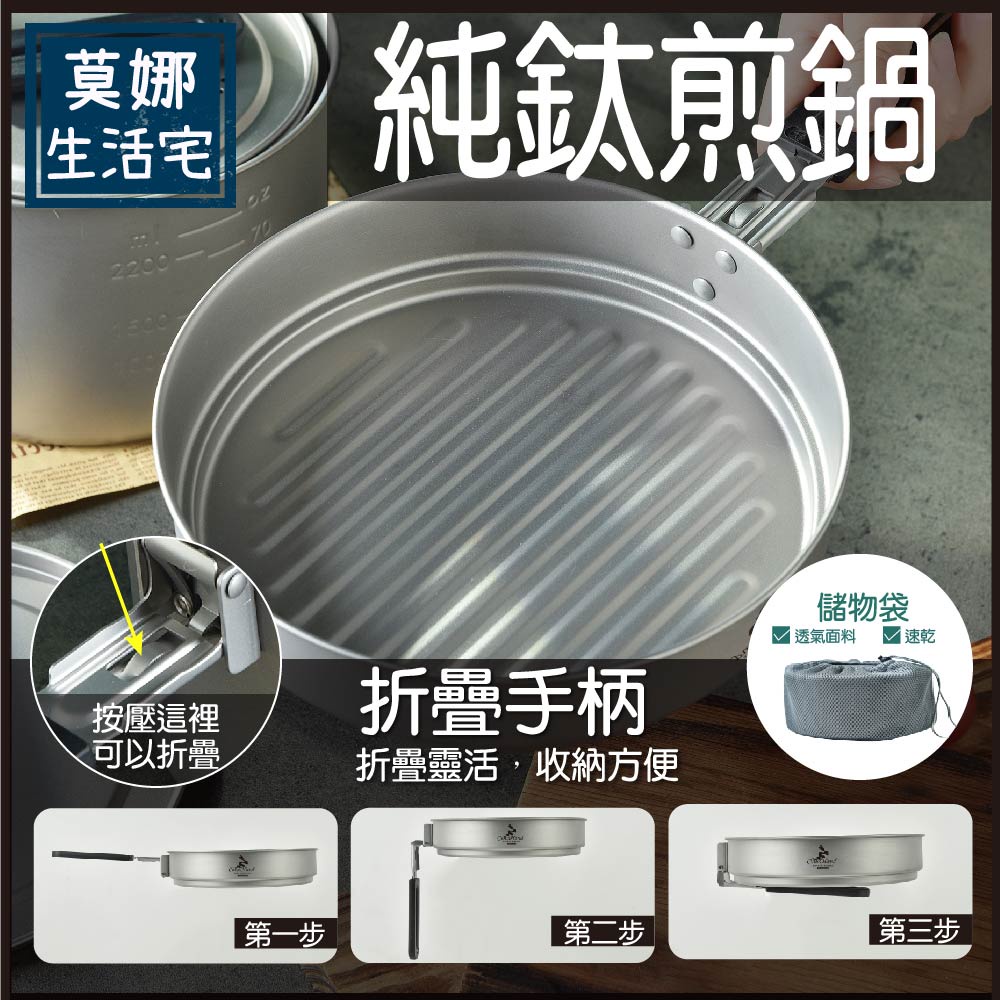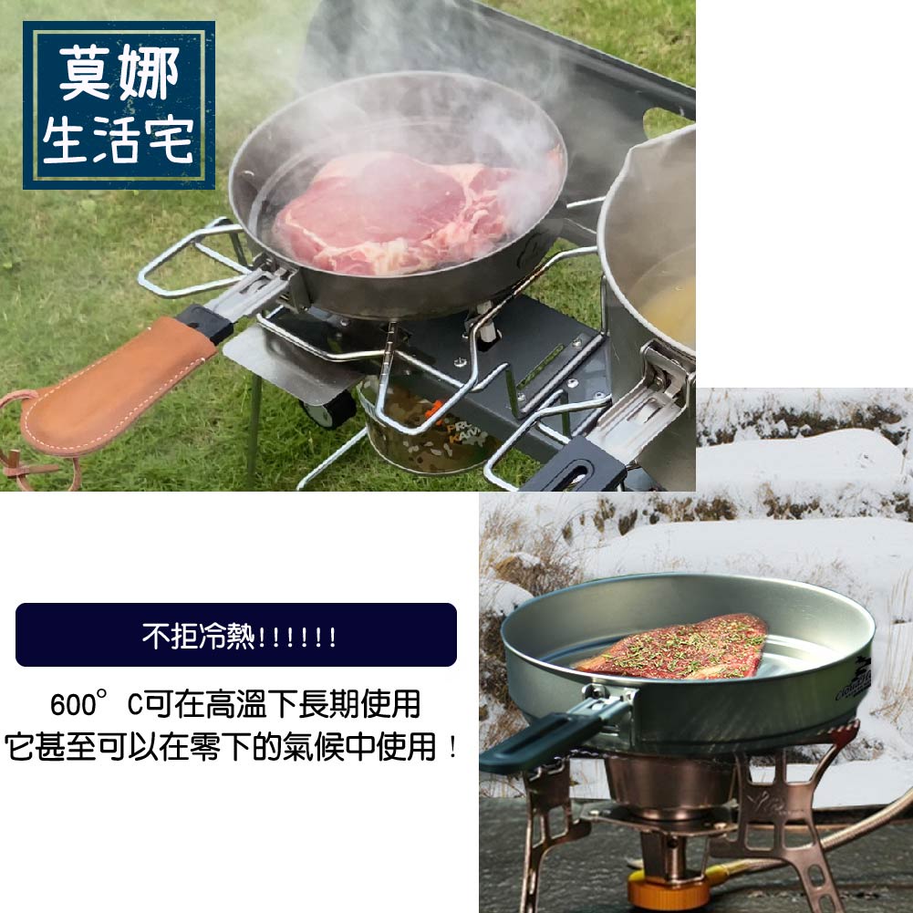 2. 超輕量純鈦煎鍋,小火烹煮可發揮高效率,比同等級鍋款輕盈50%。單層煎鍋的厚度很薄,直火也請用小小火,升溫快速一不小心很容易燒焦,燒焦須用鋼刷也較不易清洗。燒焦雖然影響美觀但不影響使用。